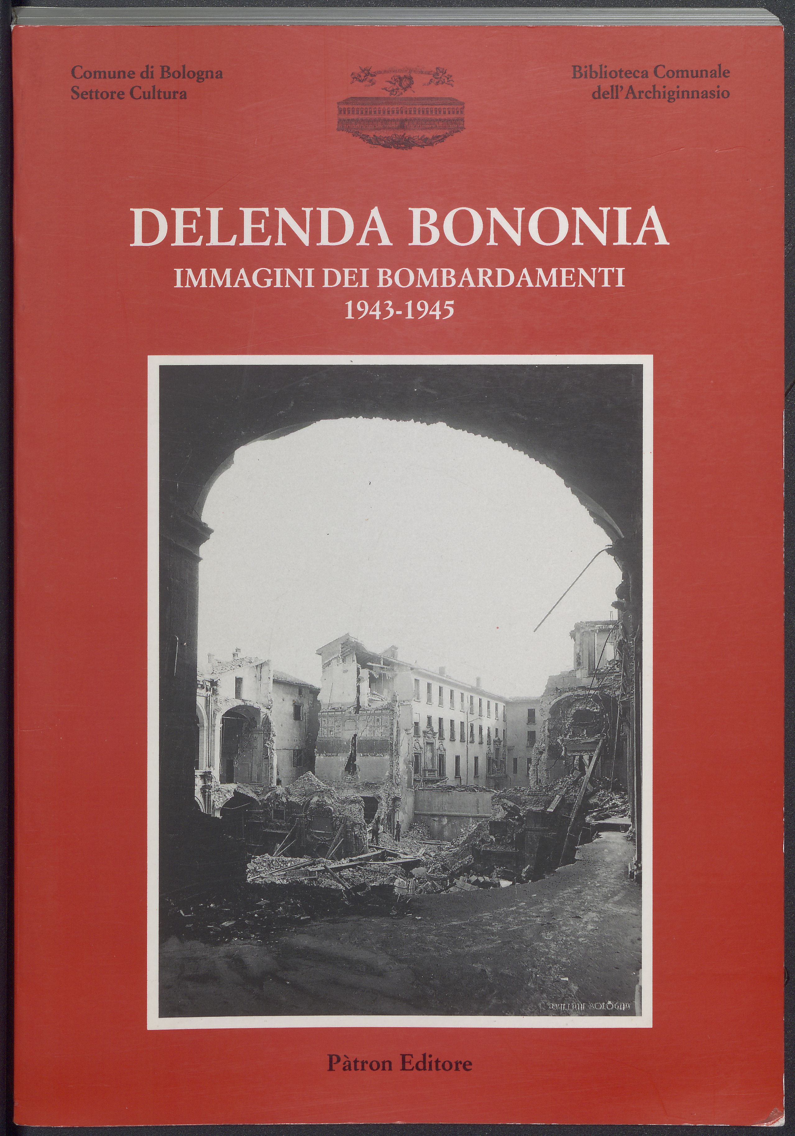 La Biblioteca dell’Archiginnasio, forse perché ripetutamente colpita dai bombardamenti alleati, non ha rimosso quelli che si possono considerare i momenti più cupi della sua storia: nel 1995 ha organizzato una grande mostra dal titolo Delenda Bononia. Immagini dei bombardamenti 1943-1945 (qui la copertina del volume pubblicato con molti materiali della mostra) e successivamente ha realizzato il sito Bologna bombardata, dove sono consultabili documenti, fotografie, opuscoli e altro materiale relativo non solo ai bombardamenti che colpirono la Biblioteca dell’Archiginnasio, ma anche all’insieme delle incursioni aeree subite dalla città tra il luglio 1943 e l’aprile 1945.