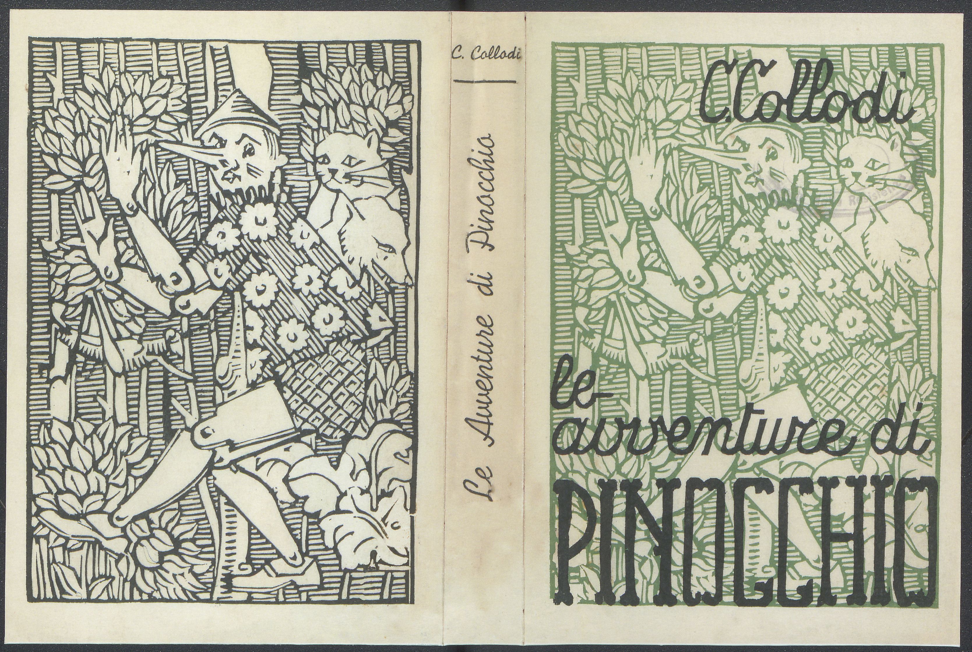 L’esemplare posseduto dall’Archiginnasio è privo della sovraccoperta “pinocchiesca”. Ringraziamo la Biblioteca dell’Istituto Storico Parri di Bologna per avercene fornito una riproduzione.