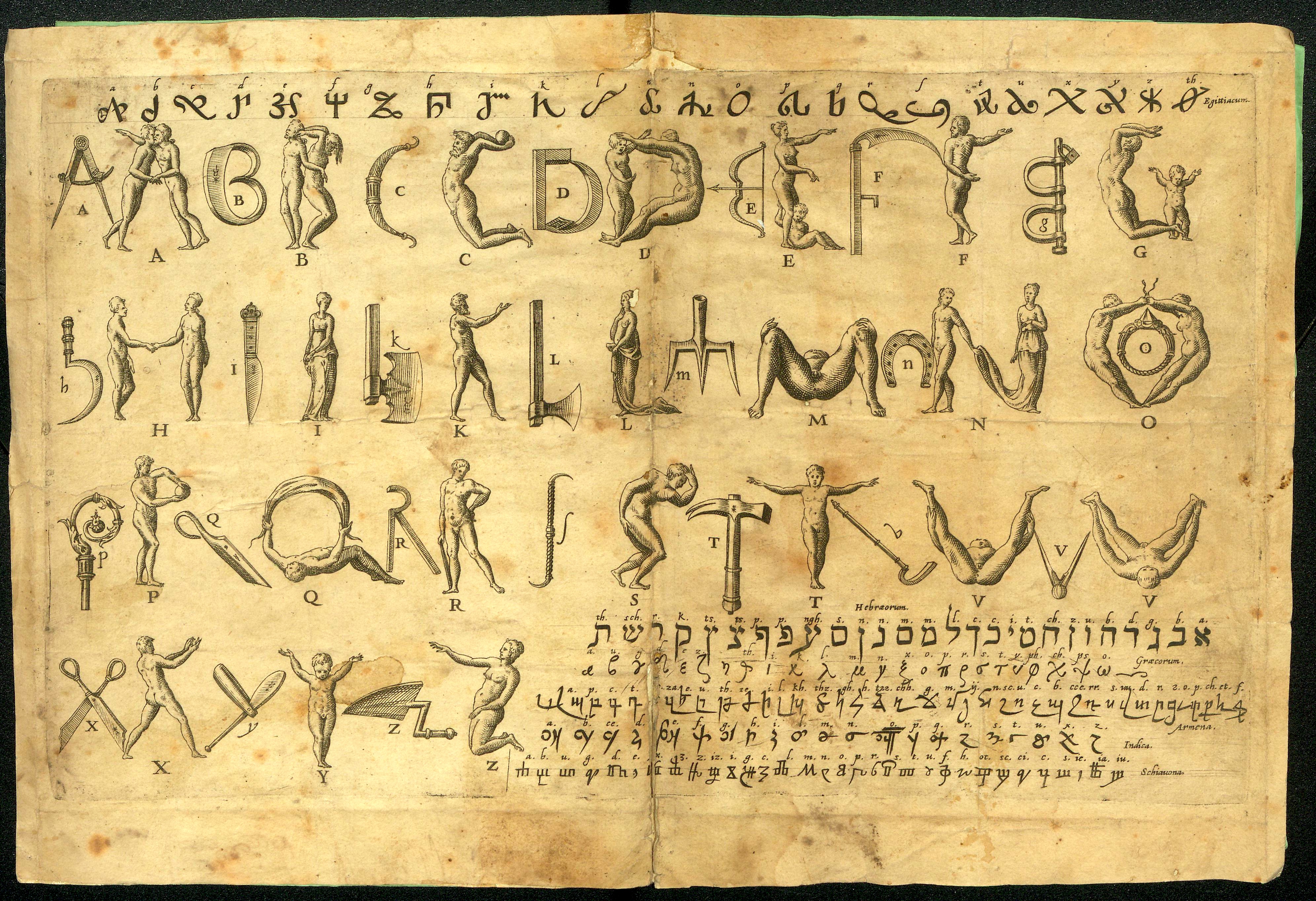 Un esempio di alfabeto del secondo tipo, in cui oggetti e persone assumono posizioni, a volte provocanti, che ricordano la forma delle lettere.