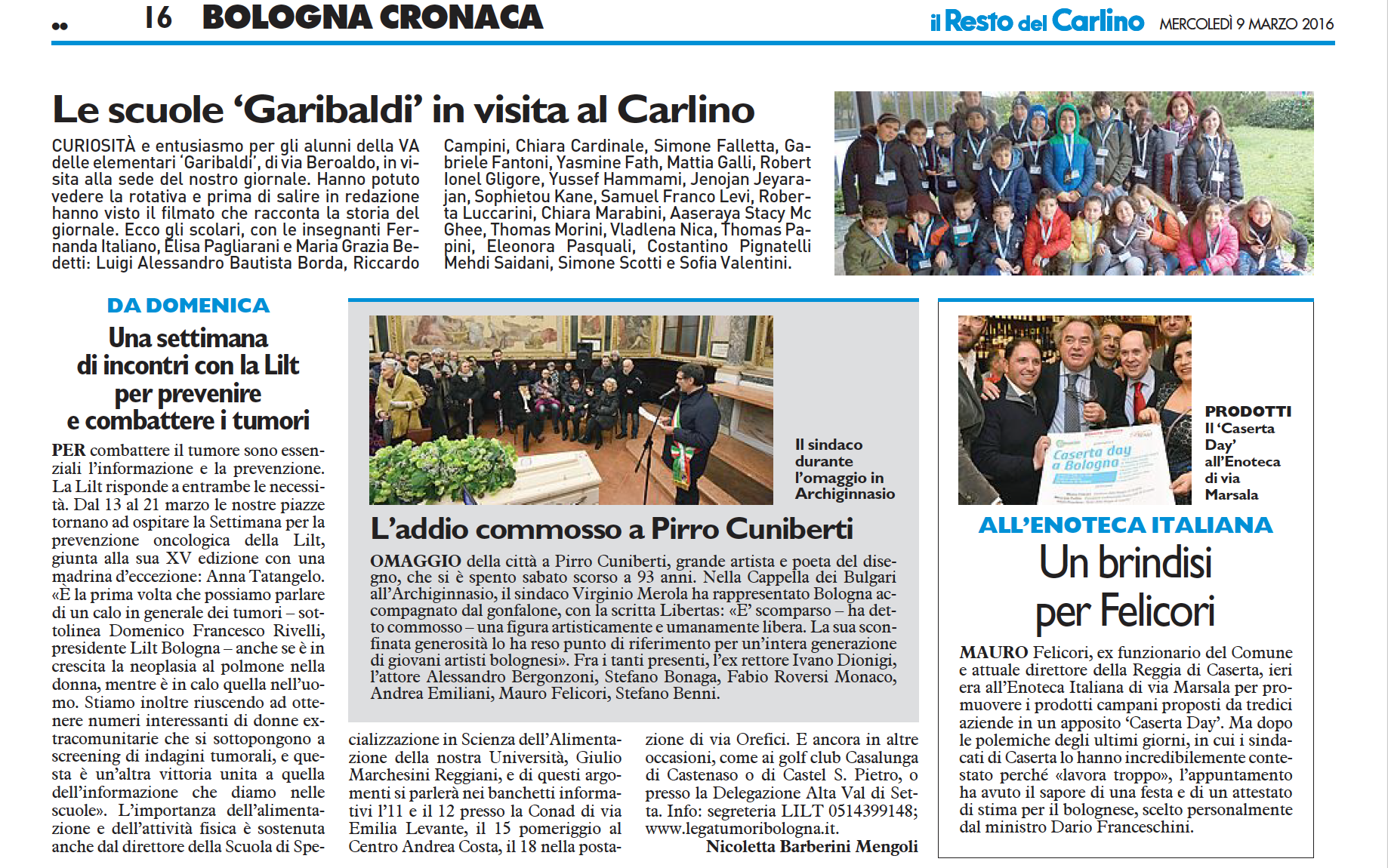 «il Resto del Carlino. Bologna», 9 marzo 2016, p. 16.