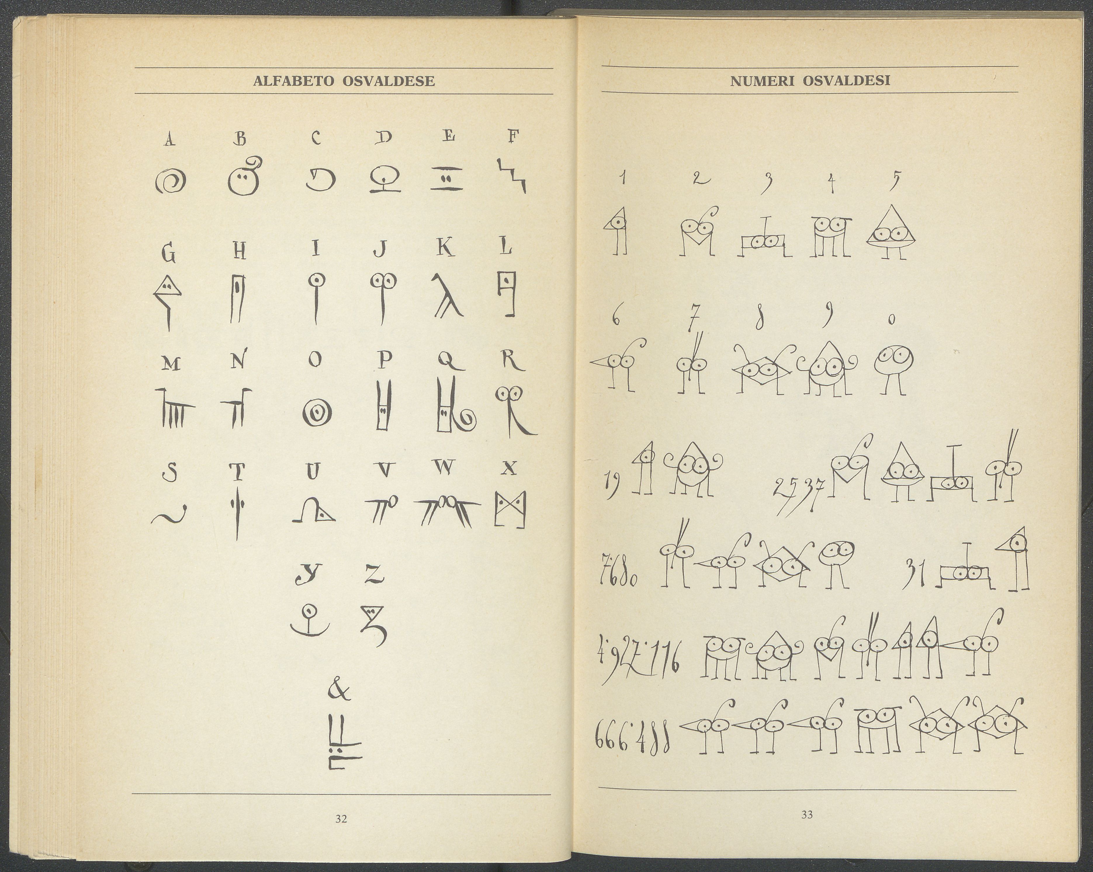 La lingua in Stranalandia è dunque fattore di critica sociale, pur mascherata da divertimento per bambini. Base fondante di questa lingua è uno specifico alfabeto. Queste tavole mostrano le lettere e i numeri che Osvaldo utilizza, anche se non è ben chiaro in quali occasioni, dal momento che non ci sono molti esempi di Stranalandese scritto.